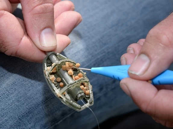 Om een method-feeder goed en effectief te vullen is het belangrijk dat deze geheel schoon is. Soms blijven er wat voerresten van de vorige worp achter. Deze zijn nu gemakkelijk en snel te verwijderen met de naald en borstel van de Cresta Method Cleaning Brush. Geleverd met een extra borstel.