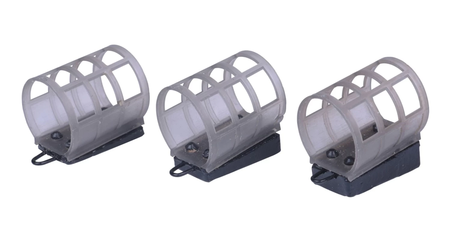 Deze Plastic Cage Feeder combineert de eigenschappen van een dichte plastic voerkorf en een gaaskorf. Dankzij het open design aan de bovenkant zal het voer en aas snel vrijkomen. Echter de afgedichte zijkanten reduceren het vrijkomen van het voer en aas bij het neerkomen en afzinken in het water. De getaperde vorm van het gewicht met het zwaartepunt naar beneden zorgt ervoor dat deze korven zeer goede werpeigenschappen bezitten. Het metalen bevestigingsoog is zeer robuust in het gewicht verwerkt. De Plastic Cage Feeders zijn verkrijgbaar in Small, Medium en Large formaat in gewichten variërend van 10 tot 50g.