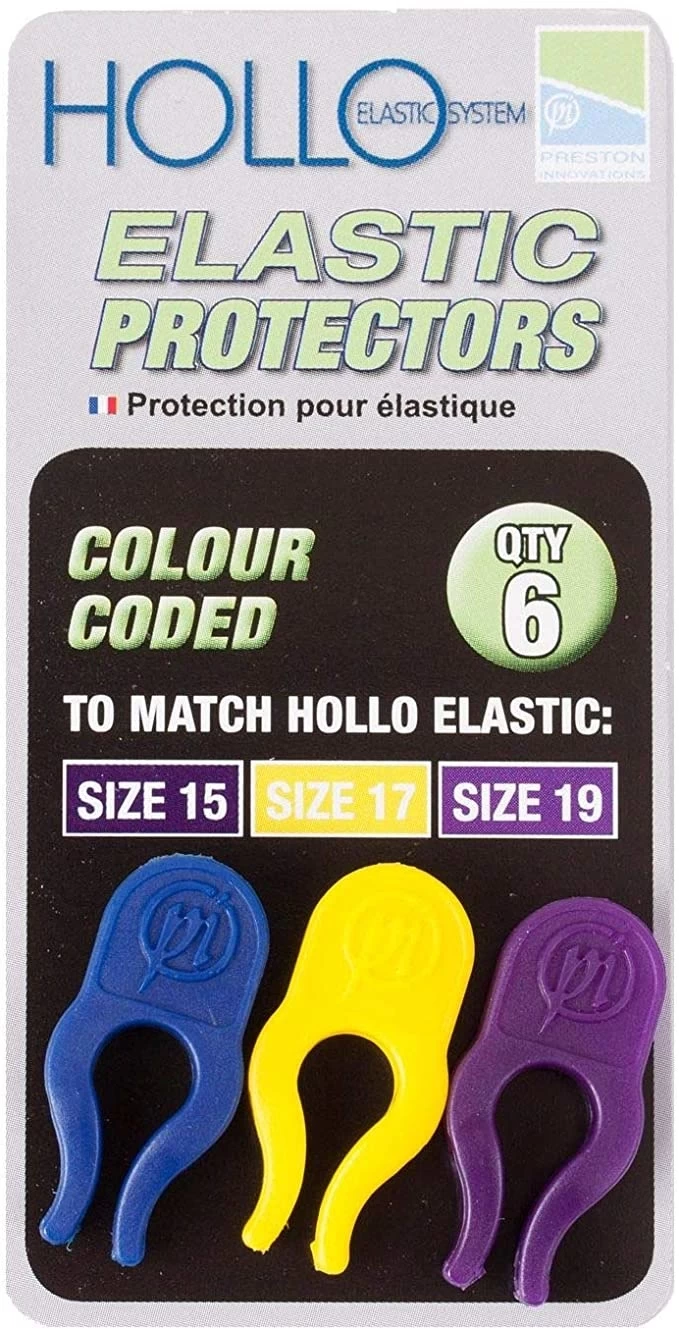 Preston Hollo Elastic Protectors. Deze Preston Hollo Elastic Protectors zijn ontwikkeld om uw hollo elastiek te beschermen tijdens opslag. Voor elke kleur elastiek is er een passende protector. Verkrijgbare maten per verpakking, inhoudt 6 stuks.