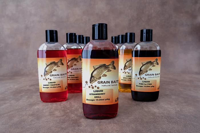 Al onze liquids worden in eigen beheer geproduceerd en bevatten dezelfde vloeibare toevoegingen en attractors als de boilies. De Liquids zijn rijk aan essentiële aminozuren, vitaminen mineralen, zoetstoffen en attractors.