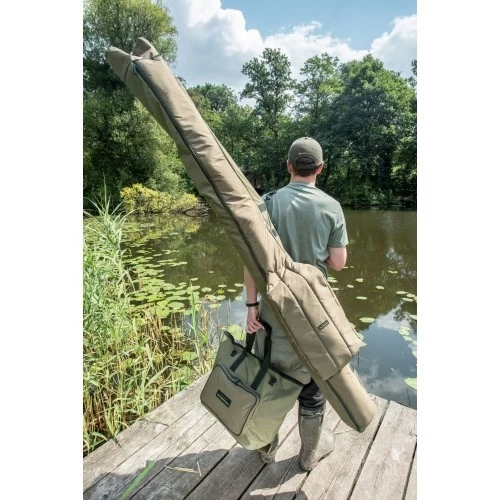 Een traditioneel foudraal voor 3 hengels. Het compacte model maakt deze makkelijk mee te nemen.